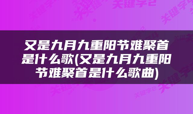 大家好,今天给各位分享又是九月九重阳节难聚首是什么歌的一些知识,其中也会对又是九月九重阳节难聚首是什么歌曲进行解释,文章篇幅可能偏长,如果能碰巧解决你现在面临的问题,别忘了关注本站,现在就马上开始吧!